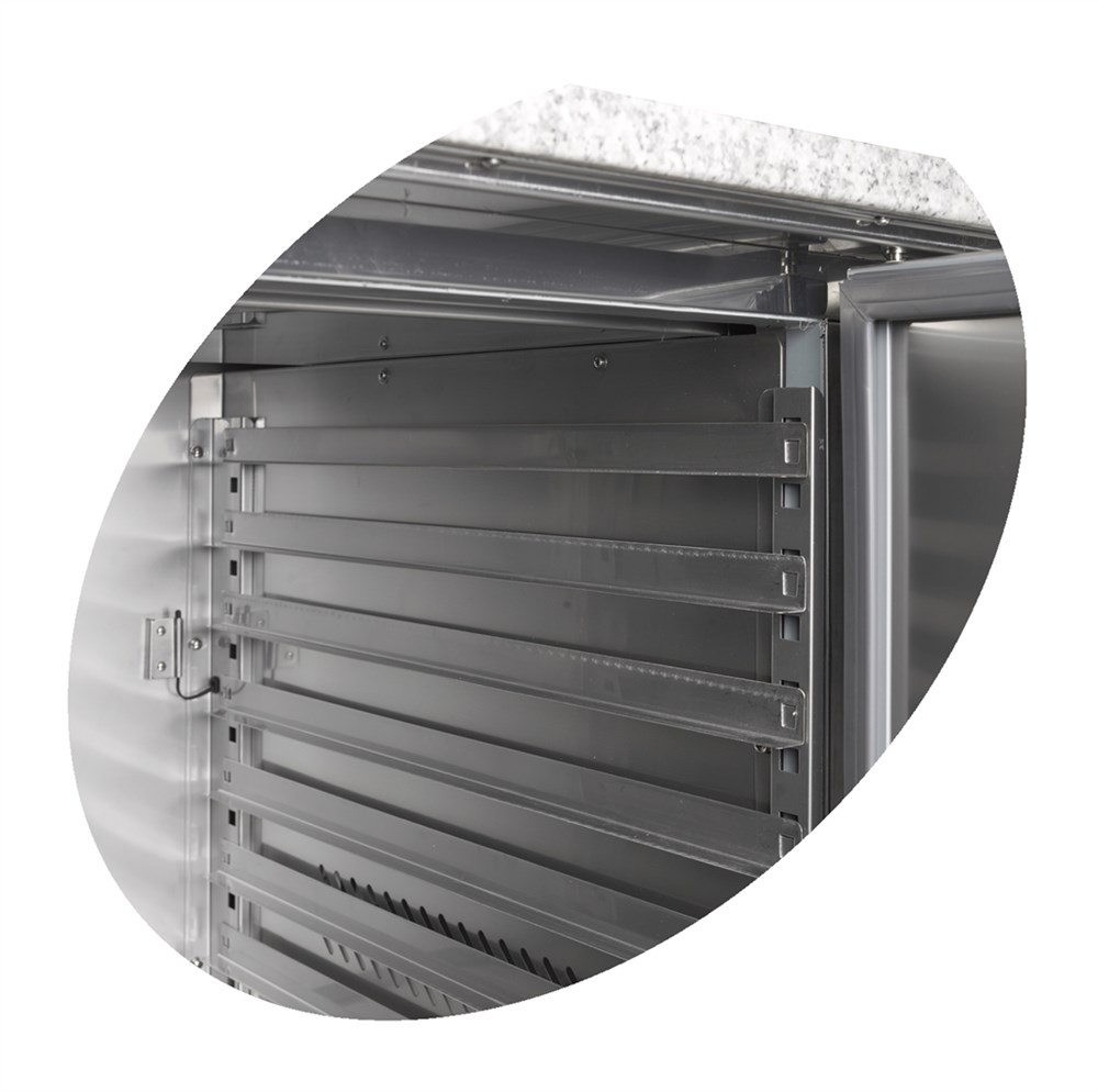 • Uppstyrningar för 7 pizzatråg per dörr (400×600 mm)