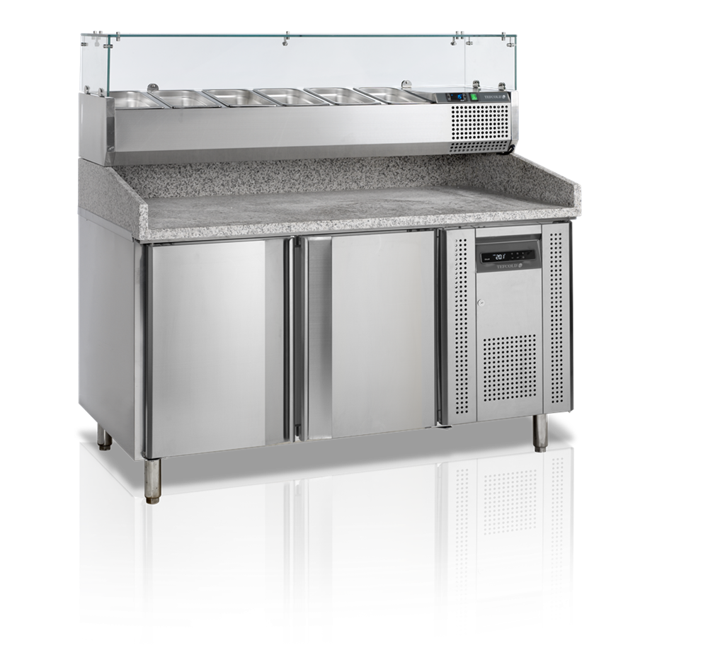 Pizzabänk med 2 dörrar och toppingenhet för GN 1/3, 390 L, Tefcold